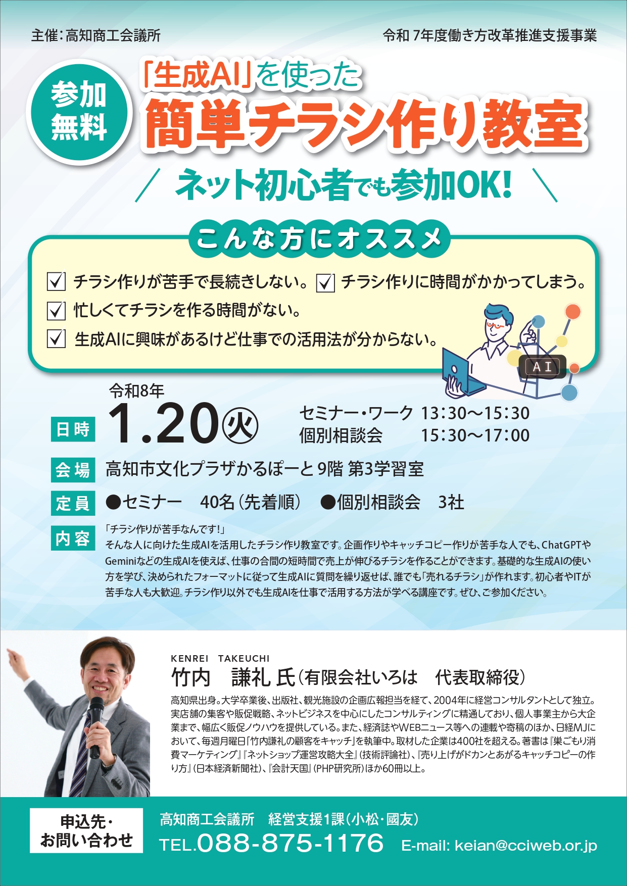 講 師 | 竹内 謙礼 氏 (有限会社いろは 代表取締役) |